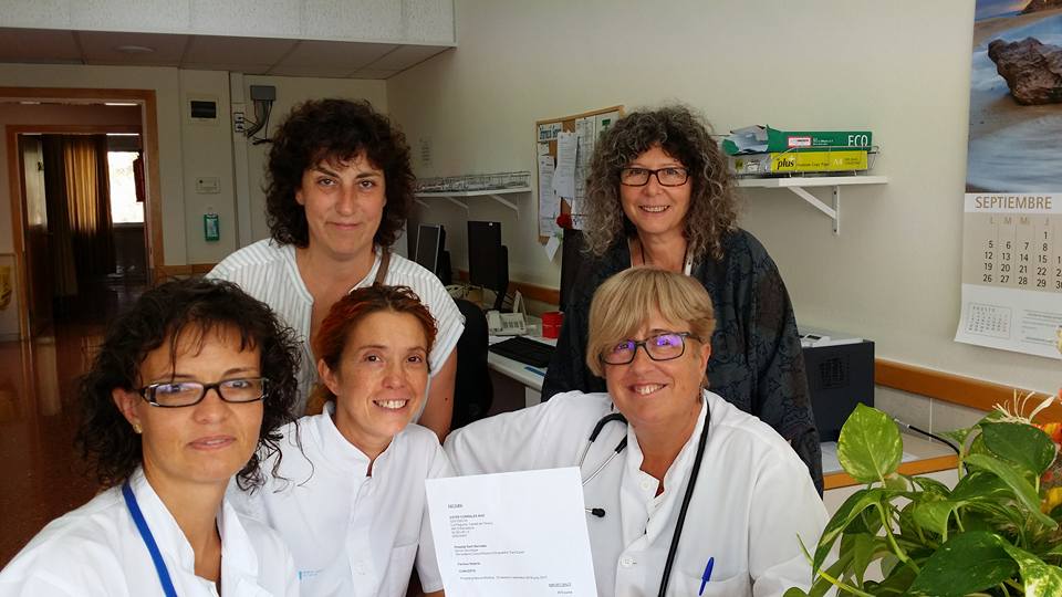 L’equip de l’hospital de dia d’oncologia de l´hospital Sant Bernabé va fer entrega dels diners per finançar la segona sessió de marxa nórdica.