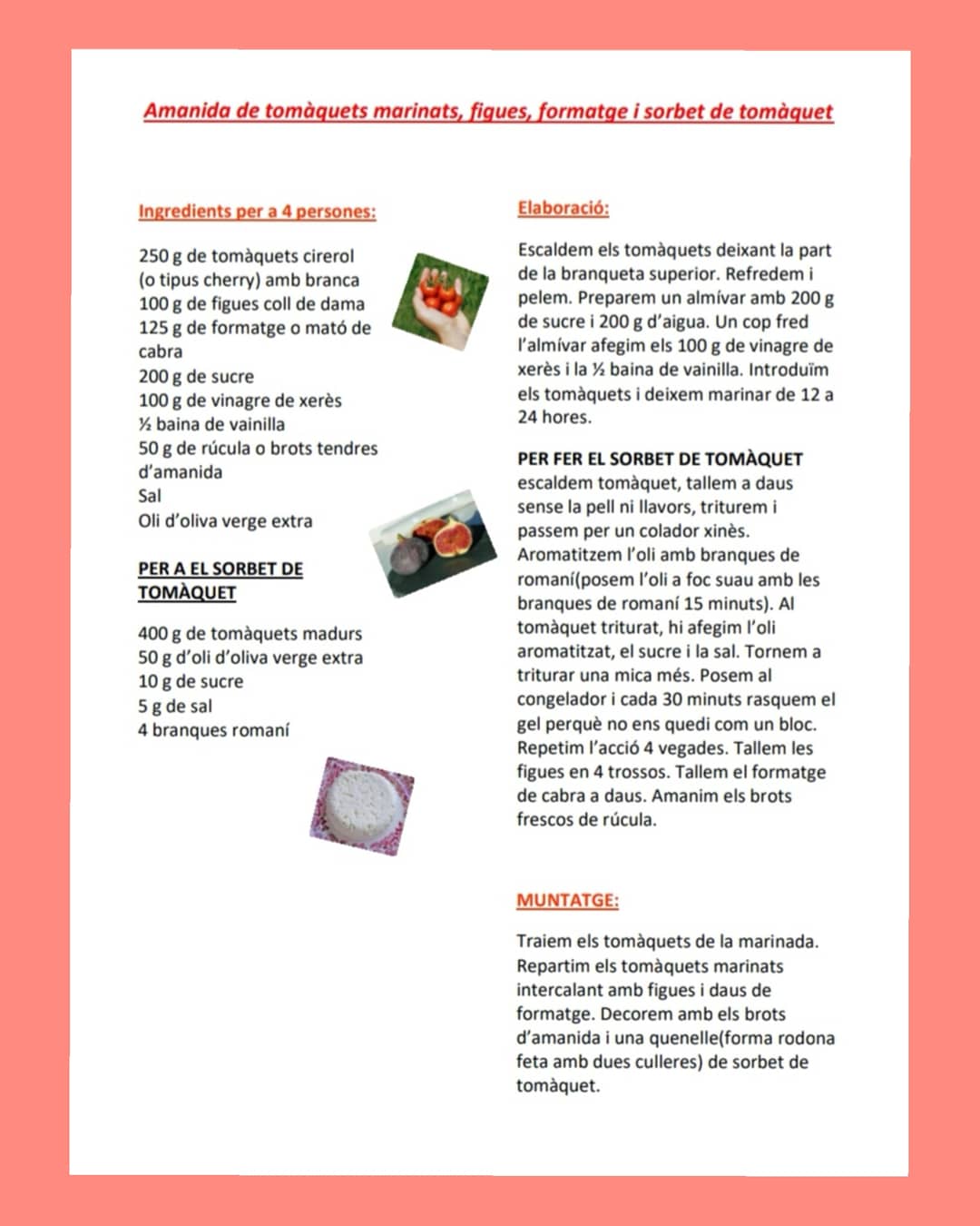 Amanida de tomàquets marinats, figues, formatge i sorbet de tomàquet. Recepta de Xavi Ribolleda com professor de l´Escola d´Hostaleria d¨Osona, molt refrescant i amb una combinació de gustos i sabors que faran explotar a la boca, aquesta manera de marinar els tomàquets es ideal per la textura a l´hora de menjar. @xaviribolleda @mariasviews @mariia_ps @lauralues79 @escola_hostaleria_osona #receptesaludablesdeginkgo #salut #suport #solidaritat #alimentacio #berga #bergueda